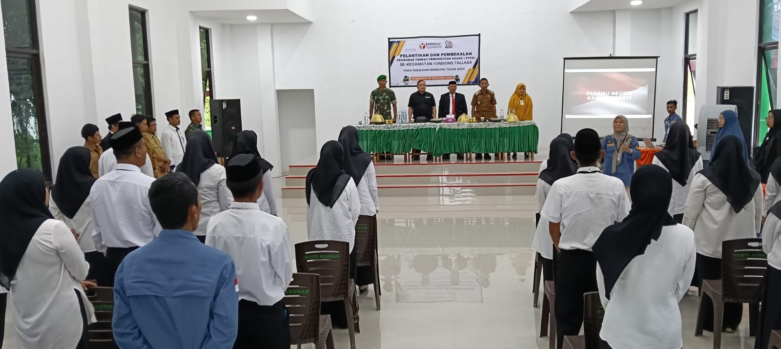 –klivetvindonesia.com— Panwaslu Kecamatan Tondong Tallasa menggelar Pelantikan dan pembekalan pengawas tempat pemungutan suara (PTPS) Kecamatan Tondong Tallasa pada pemilihan serentak tahun 2024 di Aula gedung Pusdam Muhammadiyah Jalan Sultan Hasanuddin Kelurahan Tumampua Pangkajene Kecamatan Pangkajene Kabupaten Pangkajene dan kepulauan pada 4 November 2024.