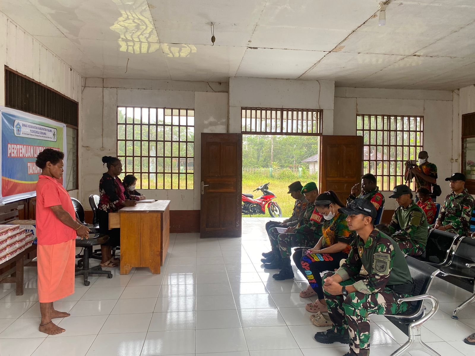 –klivetvindonesia.com– Yalimo – Bertempat di Aula Puskesmas Benawa, Kampung Trikora, Distrik Benawa, Kabupaten Yalimo, Provinsi Papua Pegunungan, Komandan Pos (Danpos) Benawa Lettu Inf Galuh Priya Pambudi dan anggota menghadiri pertemuan lintas sektor. (05/11/2024).
