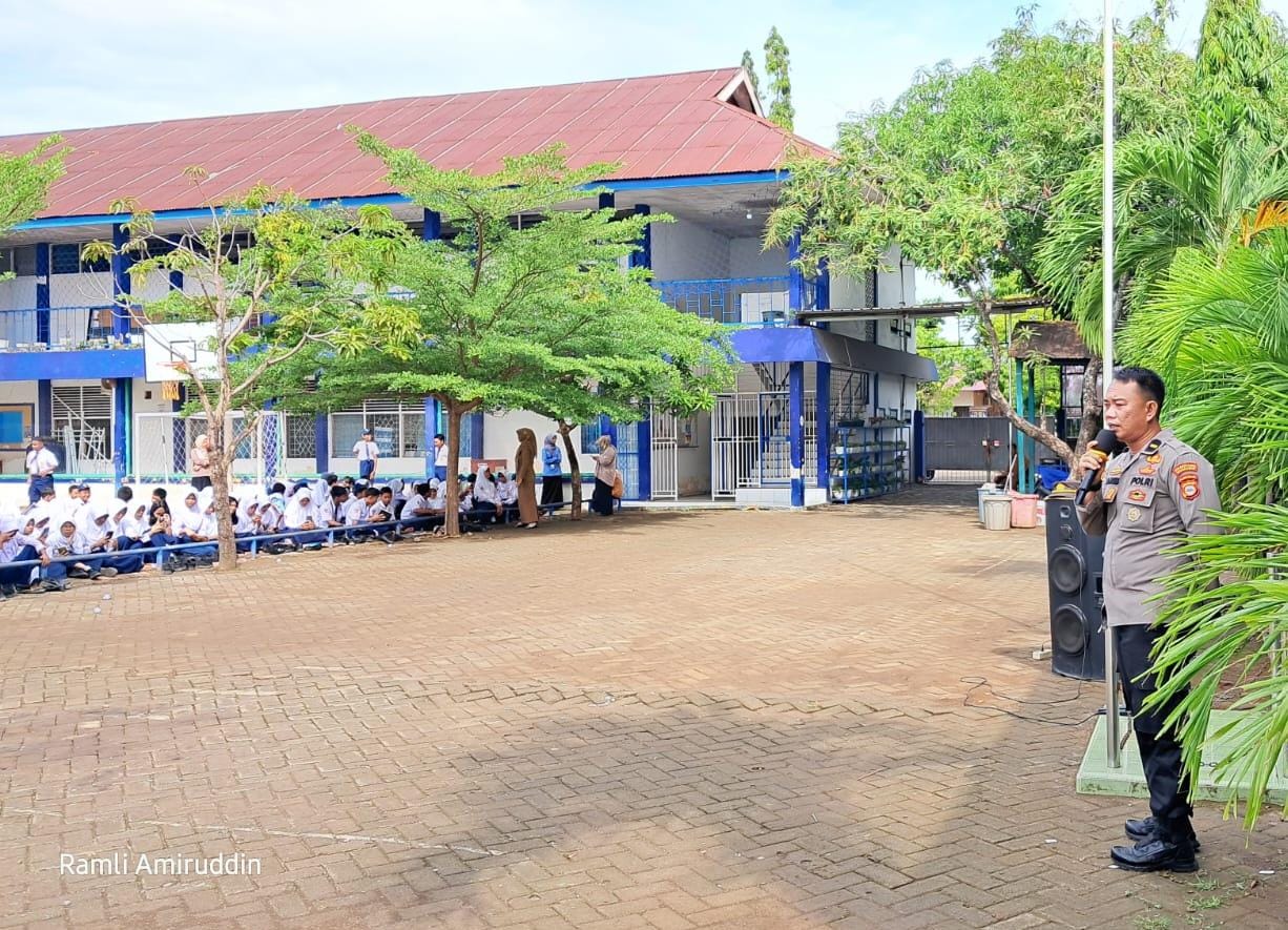 Makassar_Kepolisian Sektor Manggala Polrestabes Makassar laksanakan sosialisasi dan edukasi “STOP BULLYING” dikalangan pelajar SMPN 19 Makassar, Bertempat di halaman sekolah, Jln. Tamangapa Raya III Kel. Bangkala, Kamis (14/11/24) Pagi