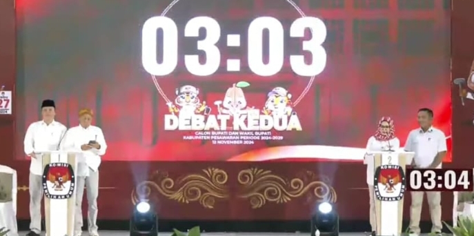 Klivetvindonesia,com. Pesawaran- Debat kedua Calon Bupati dan Wakil Bupati Kabupaten Pesawaran mengusung tema ”Membangun Masyarakat Pesawaran yang Sehat Cerdas dan Sejahtera” diikuti kedua Paslon yakni pasangan nomor urut 01 Aries Sandi Darma Putra – Supriyanto dan pasangan nomor urut 02 Nanda Indira – Antonius Muhammad Ali.