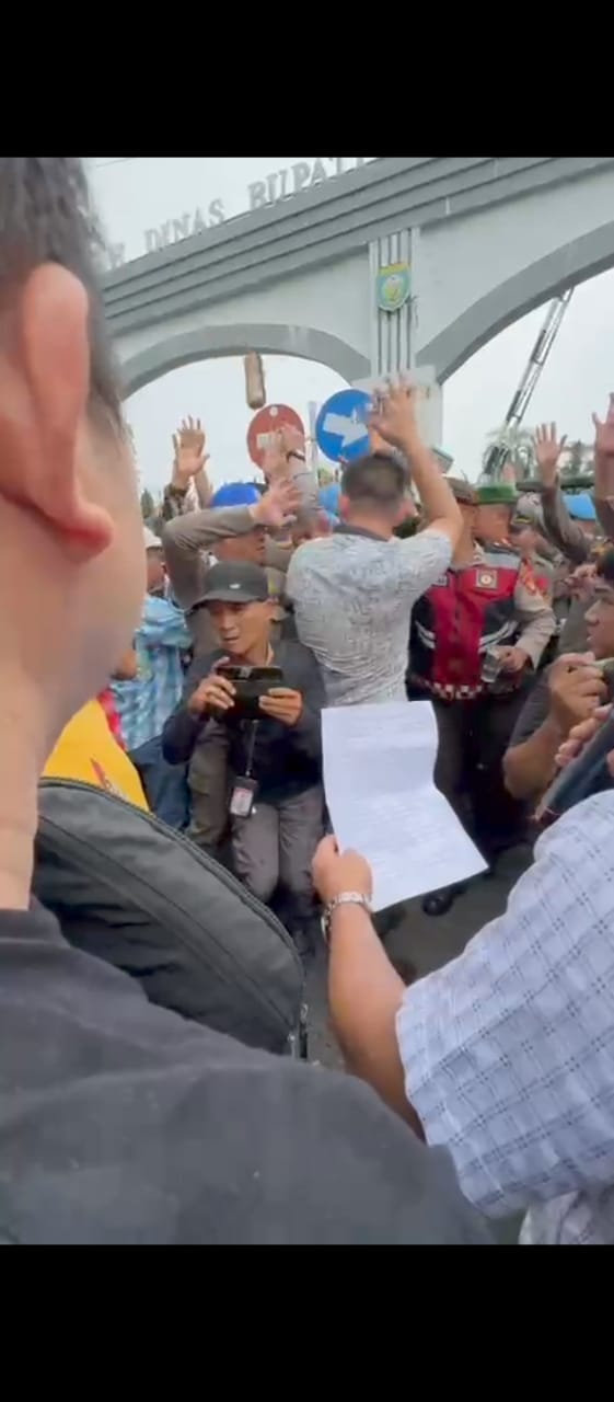 Aksi massa ini sempat memanas ketika air mineral dilemparkan ke arah rumah dinas. Beberapa di antaranya nyaris mengenai Pj Bupati. Meskipun begitu, situasi berhasil dikendalikan oleh aparat kepolisian.