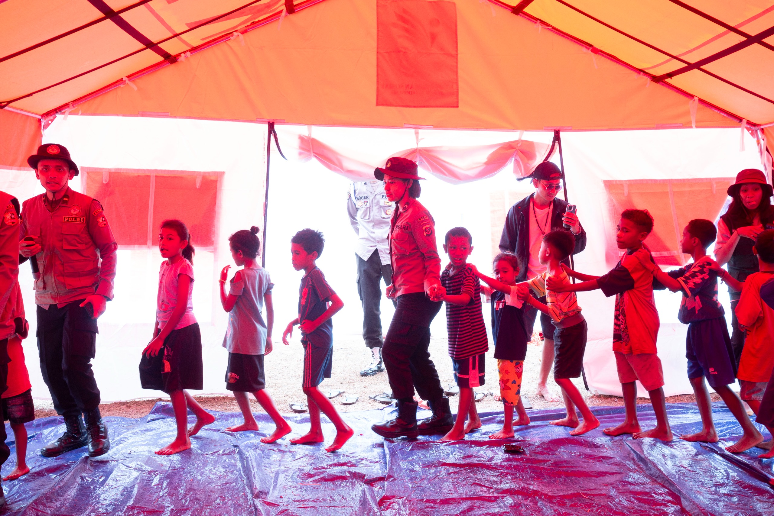 “Tim bergeser ke Posko Apo Tobi untuk melakukan pendampingan psikologi. Sesi I dimulai dengan kegiatan psikososial yakni melakukan kunjungan kepada fasilitas posko disertai dengan interaksi dengan pengungsi,” jelas Yenny.