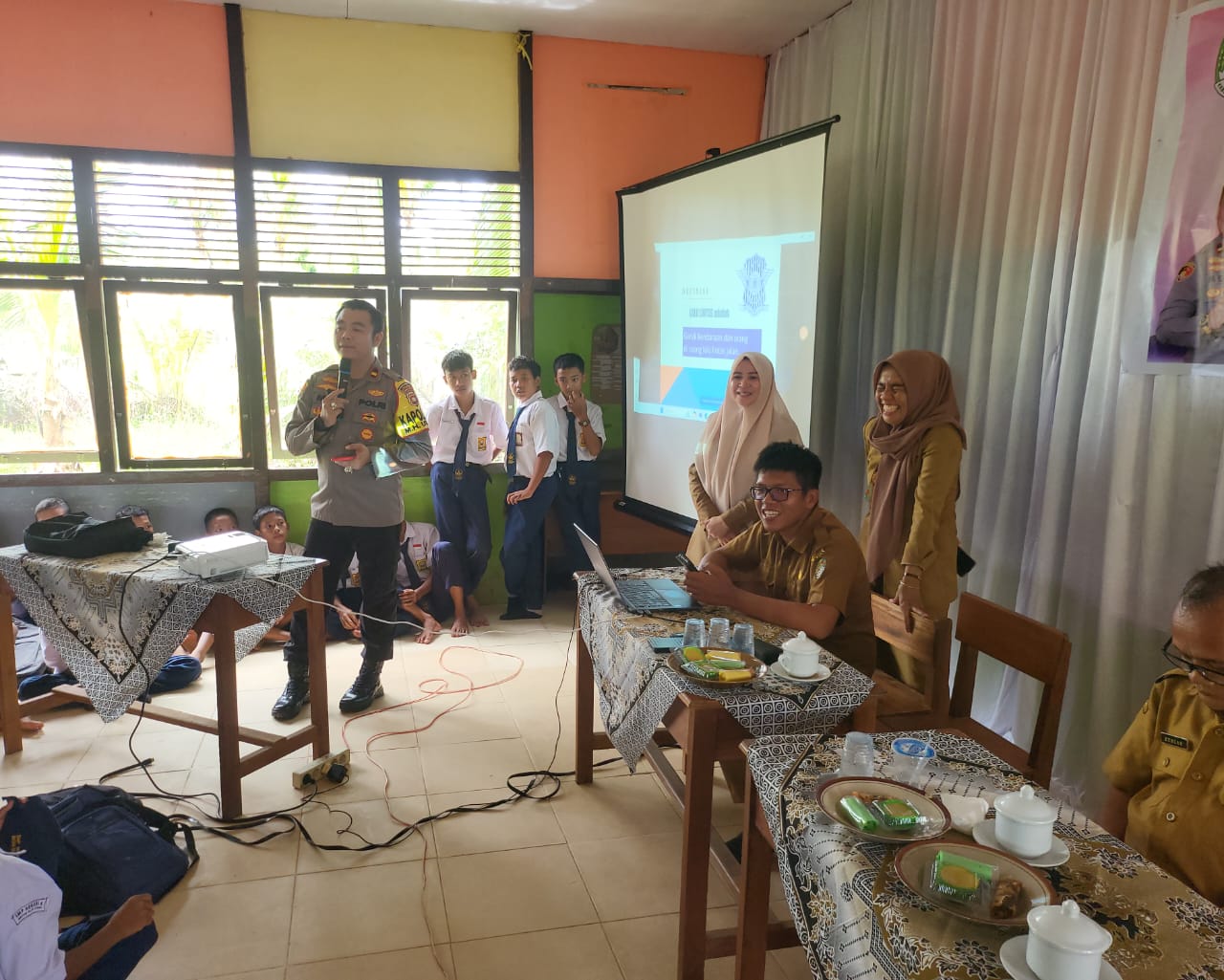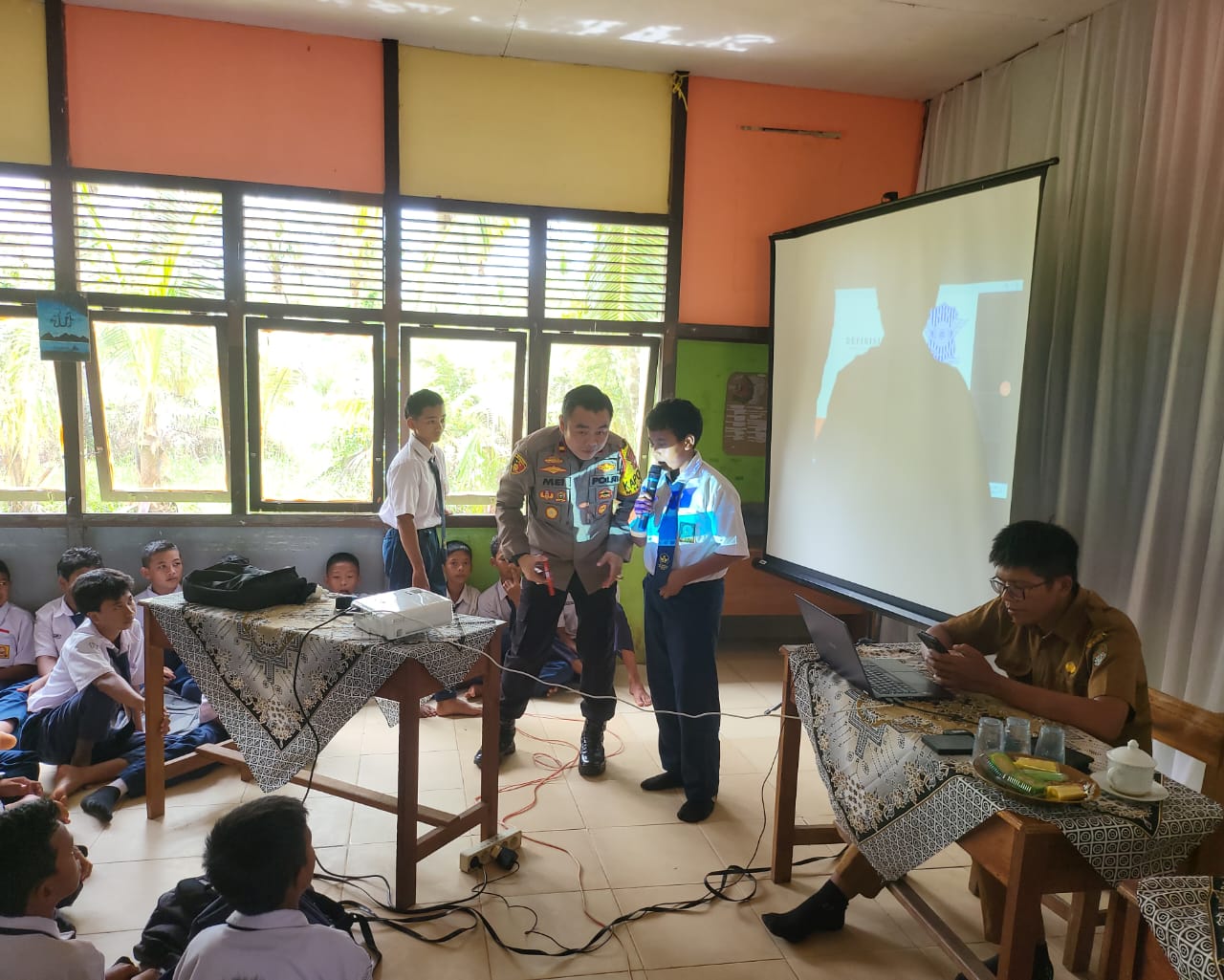 klivetvgindonesia.com.Kabupaten Ketapang, -Kalimantan Barat ,-Polda Kalbar, Kapolres Ketapang AKBP Setiadi, S.H., S.I.K., M.H., melalui Kapolsek Matan Hilir Utara (MHU), IPDA Meinardus, S.H., M.H., beserta Bhabinkamtibmas Desa Tanjung Baik Budi Bripka Syarli, melaksanakan kunjungan dan sosialisasi di SLTPN 04 Desa Tanjung Baik Budi, Kecamatan Matan Hilir Utara Kabupaten Ketapang. Dalam kunjungannya, Kapolsek MHU melaksanakan sosialisasi dan memberikan edukasi kepada para siswa di ruang aula pertemuan SLTPN 04, terkait pencegahan dan penanganan tindakan kekerasan, bullying, bahaya rokok serta penyalahgunaan NAPZA, sekaligus pentingnya tertib berlalu lintas, Selasa (19/11/2024) Pukul 08.00 wib.