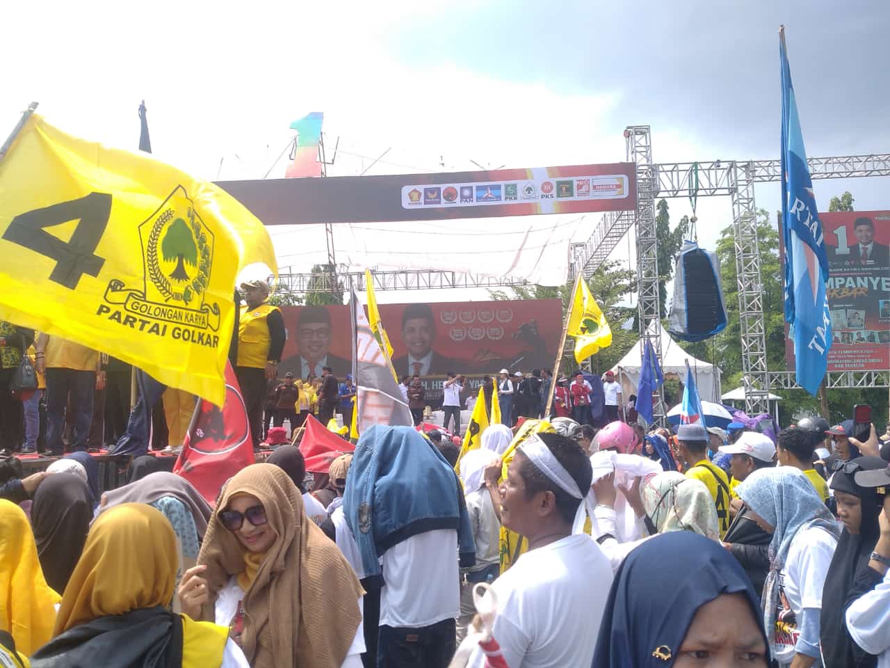 –klivetvindonesia.com– Meski hujan tak membuat ribuan Simpatisan dan pendukung Calon Bupati Takalar 2024 – 2029 Daeng H Manye – H Hengki bergeser dari lokasi kampanye Akbar yang berlangsung di lapangan alun – alun Makkatang Daeng Sibali Kabupaten Takalar , Sabtu 23 November 2024 ,namun mereka tetap setia hingga akhirnya acara tersebut .