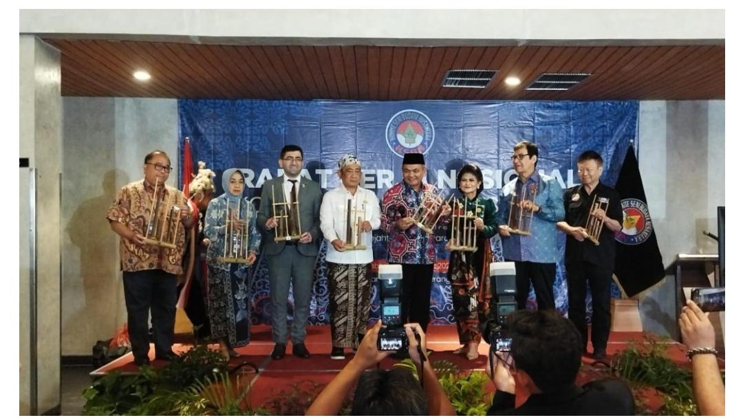 Sekaligus membuka Rakernas dengan memainkan angklung.
