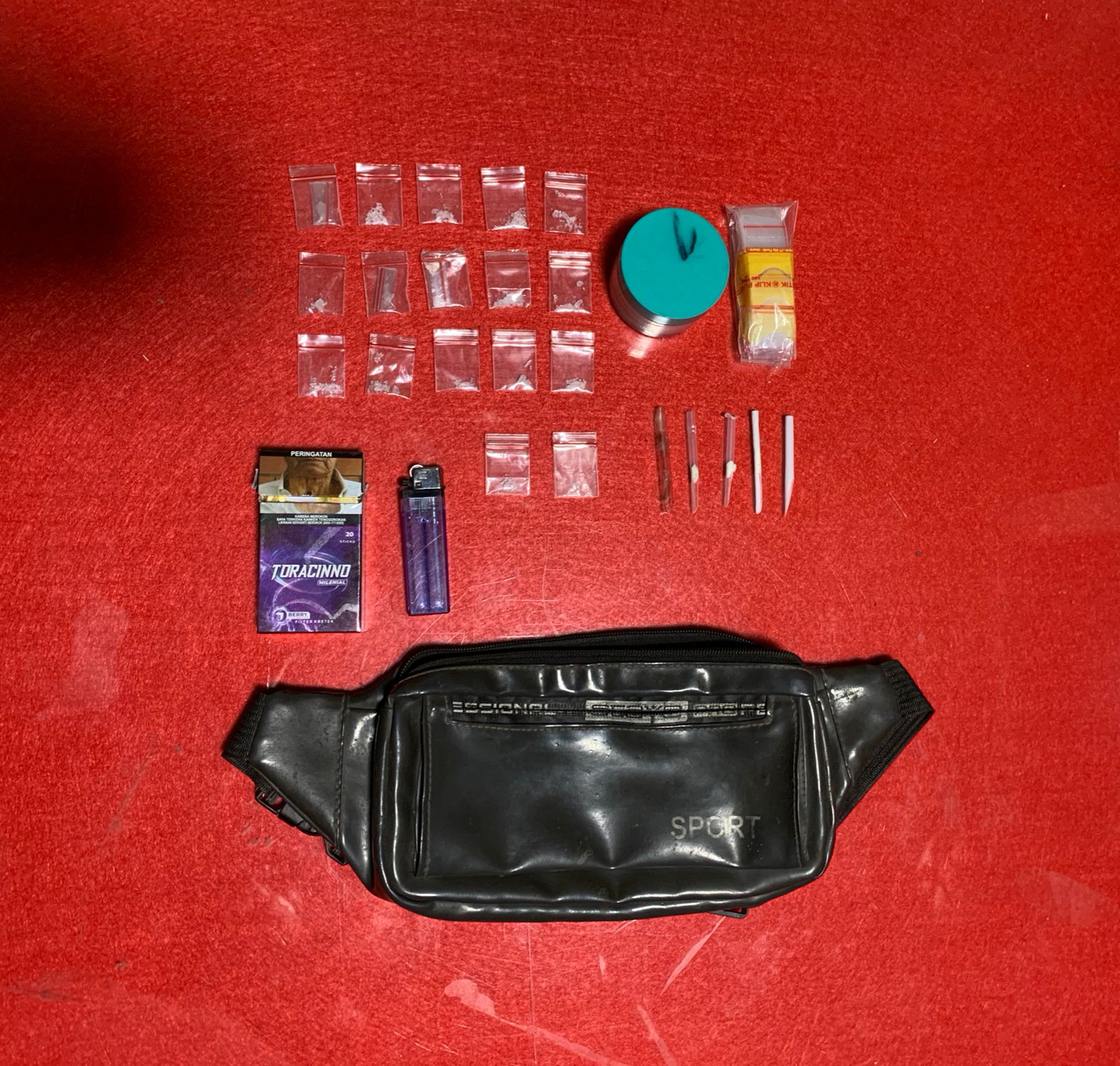 Saat dilakukan penggerebekan yang disaksikan perangkat desa dan warga setempat, petugas menemukan 17 klip plastik bening berisi serbuk Kristal yang diduga sabu seberat 3,4 gram yang disimpan terduga pelaku didalam kamar depan rumahnya. Selain itu, sejumlah alat bukti lainnya, seperti pipet sendok sabu, puluhan plastik klip kosong, korek api gas dan sebuah tas selempang juga turut diamankan. Terduga pelaku diduga kuat sebagai pengedar yang aktif menjual barang haram tersebut di sekitar pemukimannya.