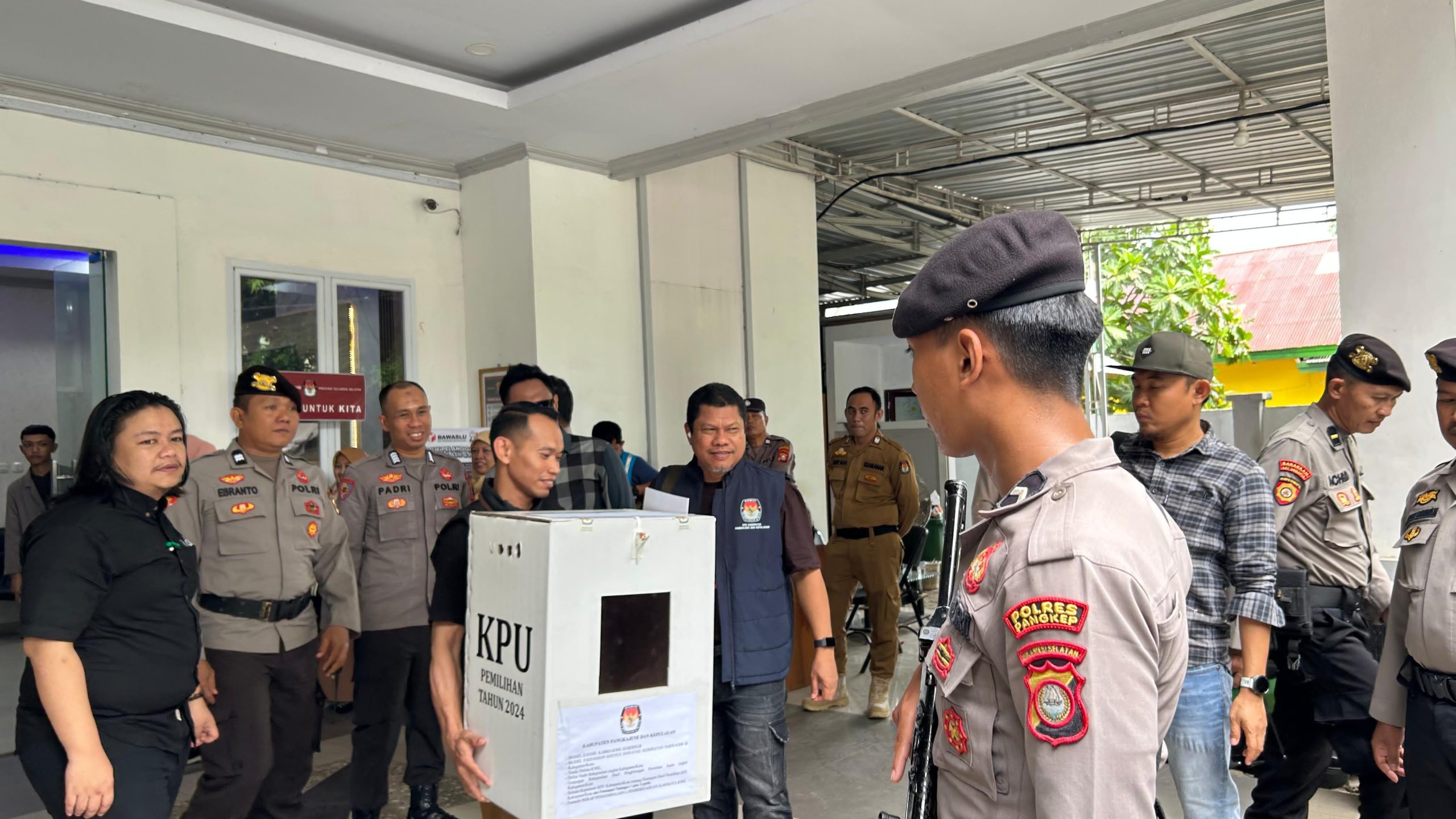 Proses pengawalan logistik ini dihadiri oleh berbagai pihak, termasuk Ketua KPU Kabupaten Pangkep, Ichlas, S.Pd., Wakapolres Pangkep Kompol Sugeng Suprijanto, S.Pd., M.H., serta jajaran pejabat KPU dan Bawaslu Kabupaten Pangkep. Tidak ketinggalan, pengamanan juga melibatkan personel Polres Pangkep, yang memanfaatkan dua unit mobil dinas untuk memastikan keamanan dokumen selama perjalanan.