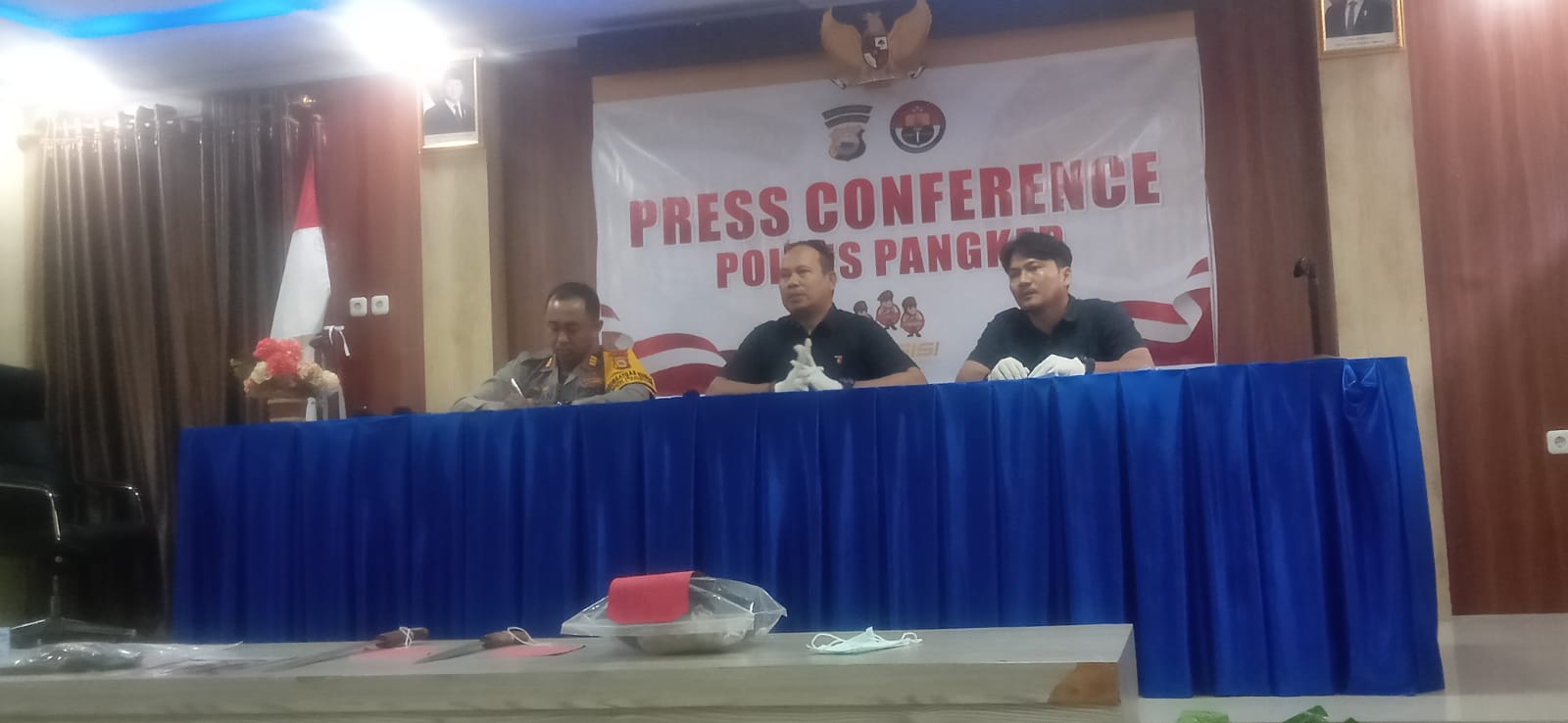 Adapun barang bukti satu (1) bilah parang panjang berukuran 38 cm, satu bilah parang panjang berukuran 52 cm, satu (1) baju kaos oblong berwarna hijau, satu (1) lembar celana pendek warna hitam, Ucap AKP Imran S.H.