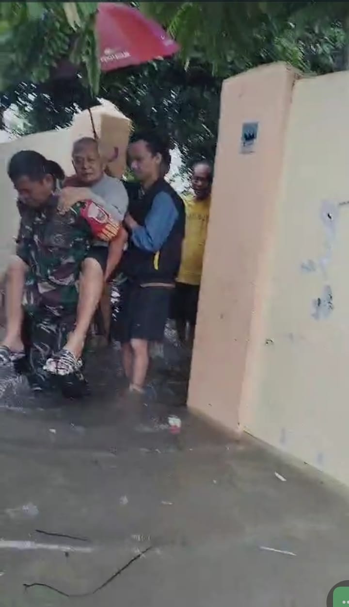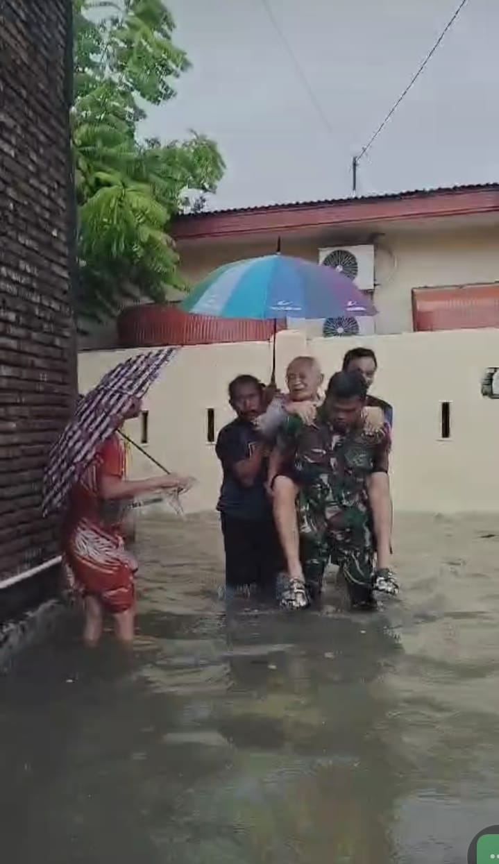 Babinsa Sertu Herman Selamatkan Lansia 85 Tahun Dari Kepungan Banjir