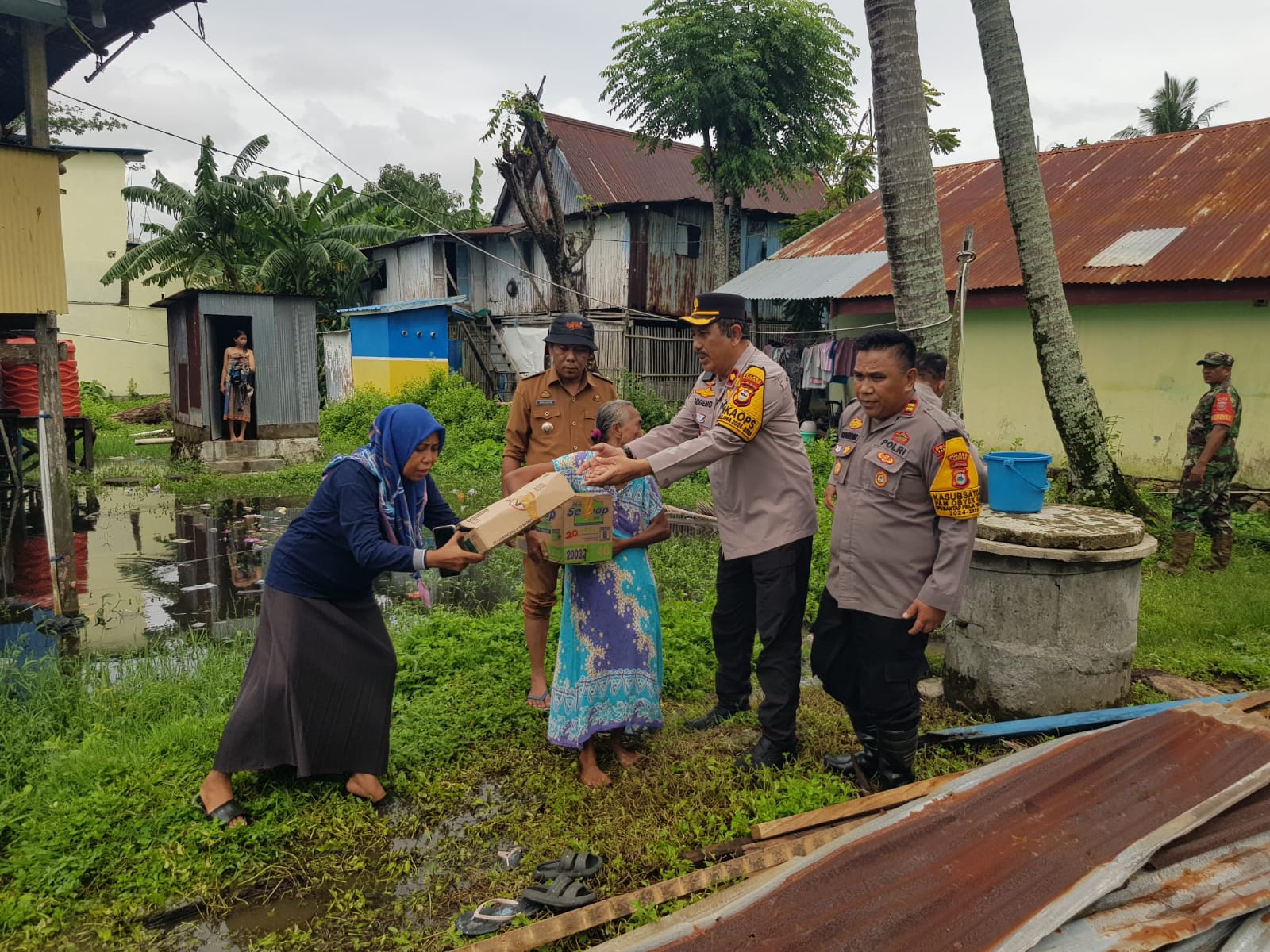 Selain itu, beliau juga membawa dan menyerahkan bantuan sosial berupa paket sembako yang diperuntukkan bagi warga terdampak peristiwa angin puting beliung yang mengalami kerusakan atap seng rumah terangkat dan terbongkar sebagian.