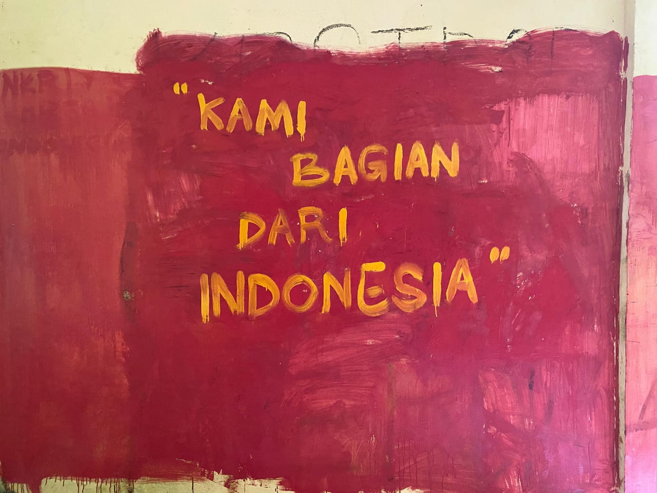 Sebagai gantinya, tulisan-tulisan yang bernuansa nasionalisme dilukiskan di tembok tersebut untuk menunjukkan bahwa masyarakat Papua adalah bagian dari Indonesia dan melawan segala bentuk gerakan yang ingin memecah persatuan dan kesatuan rakyat Indonesia.