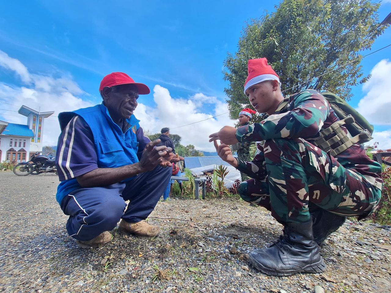 Pada Jumat (13/12/2024), Satgas Yonif 509 Kostrad, melaksanakan Komunikasi Sosial (Komsos) dengan warga Kampung Emondi, Distrik Sugapa, sambil melaksanakan pengamanan wilayah.