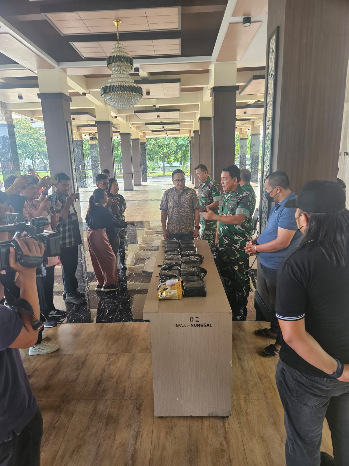 “Tersangka kita amankan pda Jumat (20/12/2024) dini hari di kawasan Jalan Sei Rengas, Kecamatan Kisaran, Kabupaten Asahan. Ada 20 paket narkoba jenis sabu seberat 20 Kg yang kita amankan sebagai barang bukti. Kemudian satu unit mobil Toyota Avanza warna hitam BK 1226 AEY,” ujar Kasdam I/BB Brigjen TNI Refrizal saat menggelar press rilis di Makodam I/BB, Jalan Gatot Subroto, KM 7 Cinta Damai, Medan Helvetia.