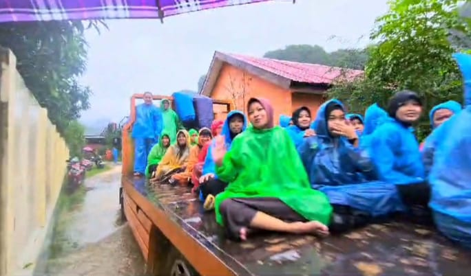 Guna memastikan keselamatan mereka, maka dilakukanlah proses evakuasi,mereka dijemput dengan menggunakan mobil tronton dari lokasi perkemahan menuju Kantor kelurahan yang jaraknya kurang lebih 3
