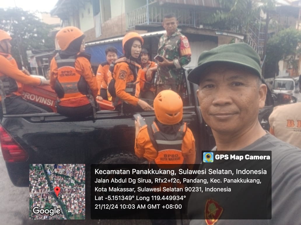 –klivetvindonesia.com– “Untung ada Babinsa Kelurahan Pandang Sertu Herman dan tim Basarnas , BPBD Kota Makassar , kalau bukan mereka tidak tahu lagi ” nasib Zaenal dg Narang ( 60) warga Kelurahan Pandang Kecamatan Panakkukang kota Makassar, Sabtu 21 Desember 2024 .