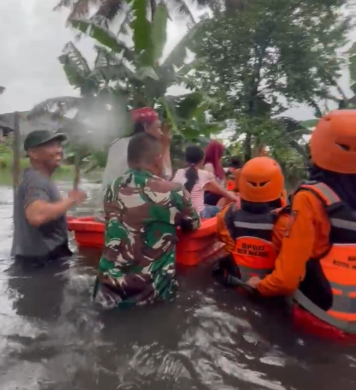 Melihat hal yang demikian ,Sertu Herman Anggota Koramil 1408-10/PANAKKUKANG, selaku Babinsa di Kelurahan Pandan ini beserta anggota Basarnas, BPBD kota Makassar langsung merapat kelokasi kediaman Zaenal dg .Narang tersebut untuk mengevakuasi pasien yang akan cuci darah tersebut dengan menggunakan perahu sampan yang kemudiaan di pandu tim Gabungan tersebut, hingga ke tepi jalan yang bisa dilintasi dan kemudiaan menggunakan mobil angkut untuk berobat ke rumah sakit Hermina, peristiwa itu berlangsung pada pukul 10: 30 Wita di jalan Abdullah daeng Sirua kompleks CV.Dewi Makassar .
