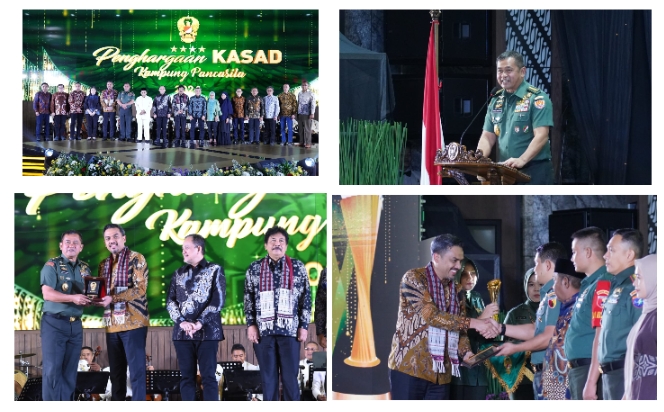 Hal tersebut disampaikan Kasad dalam acara penghargaan Kasad Award Kampung Pancasila 2024, yang berlangsung di Markas Besar Angkatan Darat (Mabesad), Jakarta, Jumat malam (20/12/2024). Acara ini juga dihadiri sejumlah tokoh nasional, termasuk Kepala Badan Pembinaan Ideologi Pancasila (BPIP) Prof. Drs. K.H. Yudian Wahyudi, M.A., Ph.D., Menteri UMKM Maman Abdurrahman, Direktur PT Astra Internasional Tbk Gita Tiffani Boer, dan Habib Luthfi Bin Yahya.