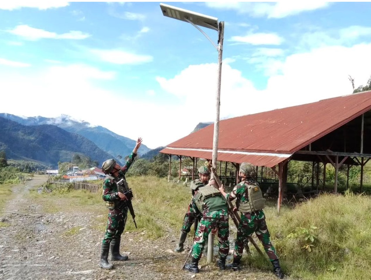 Pada Sabtu, (21/12/2024), Satgas Yonif 432 Kostrad, khususnya Pos Mbuwa pimpinan Lettu Inf Fahrizal, menggelar kegiatan Teritorial bertajuk “Papua Terang”. Program ini diwujudkan dalam bentuk pemasangan lampu solar cell sebagai penerangan di area tempat tinggal warga maupun jalan umum di Kampung Opmu, Distrik Mbuwa.