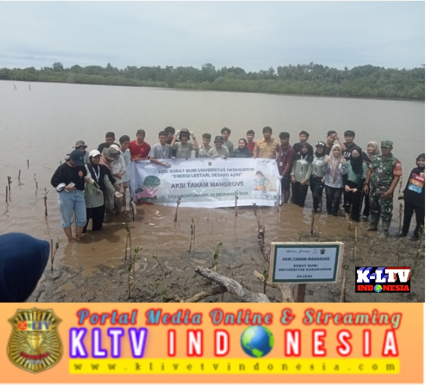 –klivetvindonesia.com– TAKALAR – Mahasiswa KKN Universitas Hasanuddin Makassar, didampingi oleh Babinsa Koramil 1426-05/Marbo Kodim 1426/Takalar Sertu Aden Ali Akbar bersama pemerintah Desa melakukan aksi tanam pohon mangrove di Pinggiran Sungai Dusun Matteke, Desa Bontomanai, Kecamatan Mangarabombang, Kabupaten Takalar, Selasa (24/12/2024).