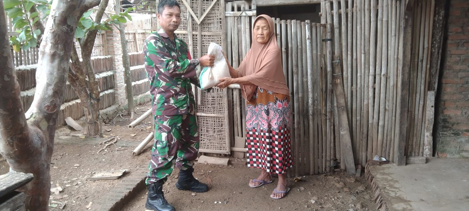 Wujud Peduli Terhadap Warga Kurang Mampu, Babinsa Berikan Bantuan Sembako