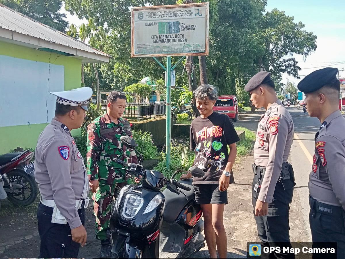 Selain itu, petugas juga memberikan teguran secara humanis kepada pengendara yang melanggar aturan, salah satunya tidak memakai helm.
