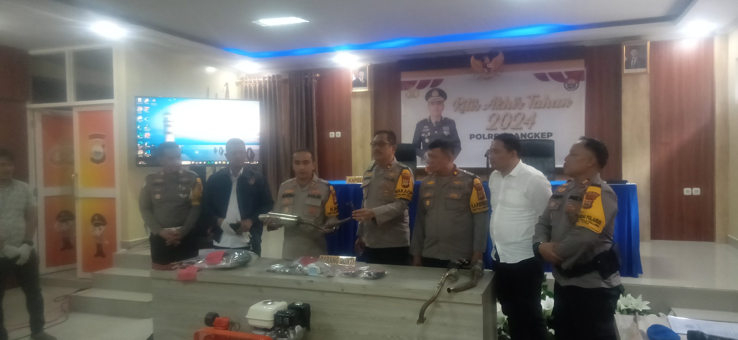 klivetvindonesia.com, Pangkep, 31 Desember 2024 – Kapolres Pangkep, AKBP Ari Kartika Bhakti, SIK, M.K.P, memaparkan hasil evaluasi akhir tahun mengenai situasi kriminalitas di wilayah hukum Polres Pangkep. Dalam acara yang digelar di Aula Kantor Polres Pangkep, beliau menyampaikan perkembangan positif sekaligus tantangan yang dihadapi oleh kepolisian selama tahun 2024.