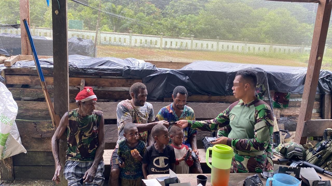 Satgas Yonif 6 Marinir, khususnya Pos Bravo pimpinan Letda Mar Alter, melaksanakan Komunikasi Sosial (Komsos) dengan warga Kampung Tomonsatu, Distrik Dekai, sambil melaksanakan pengamanan wilayah.