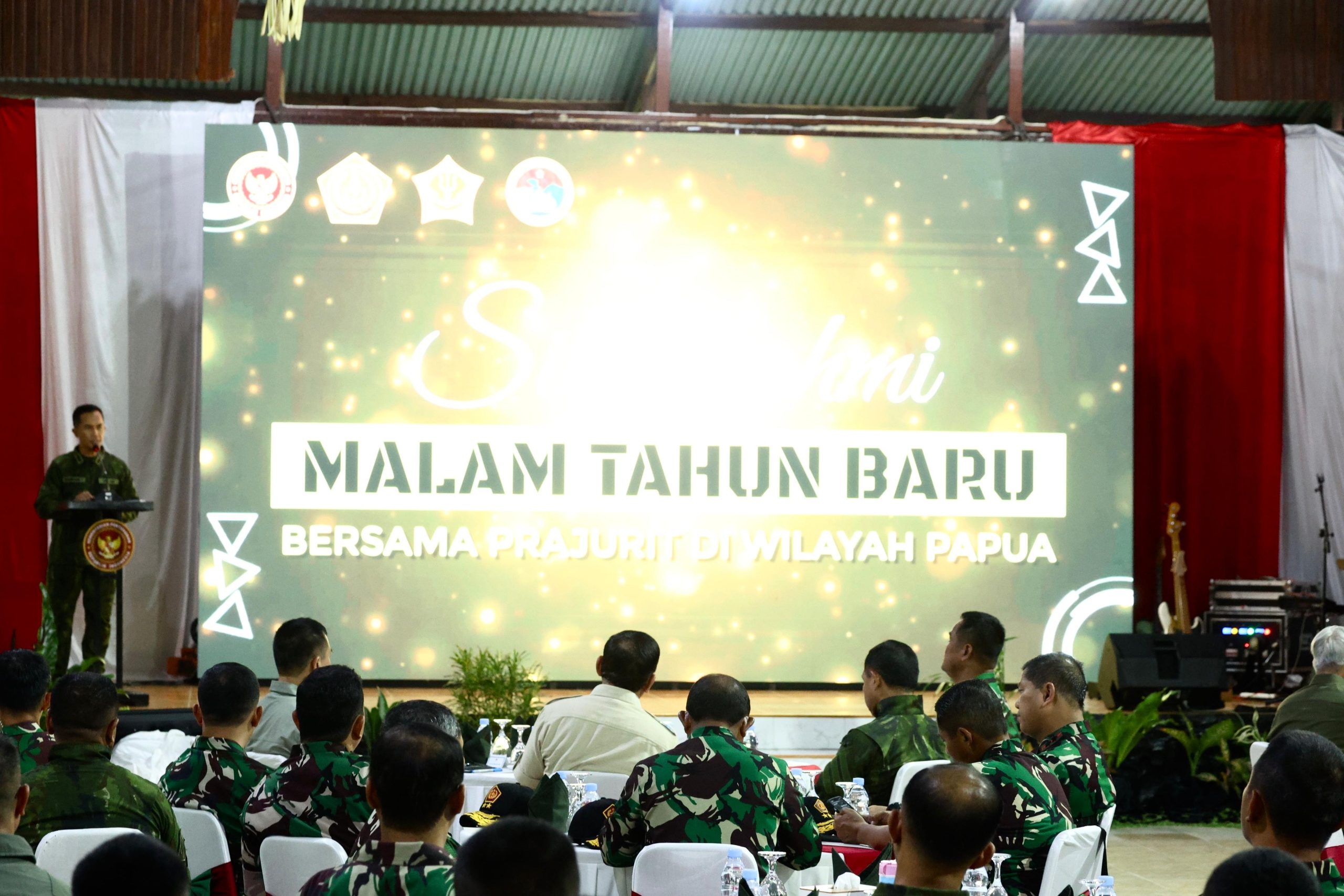 klivetvindonesia.com, TIMIKA – Menteri Pertahanan RI Sjafrie Sjamsoeddin, didampingi Panglima TNI Jenderal TNI Agus Subiyanto dan Wakil Kepala Staf Angkatan Darat (Wakasad) Letjen TNI Tandyo Budi R., merayakan malam pergantian tahun bersama ribuan prajurit TNI yang bertugas di Papua. Acara penuh kehangatan ini berlangsung di Markas Yonif 754/Eme Neme Kangasi, Timika, Papua, Selasa (31/12/2024).