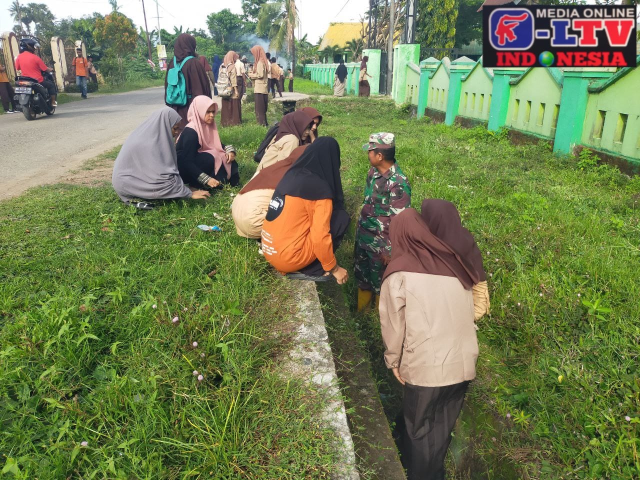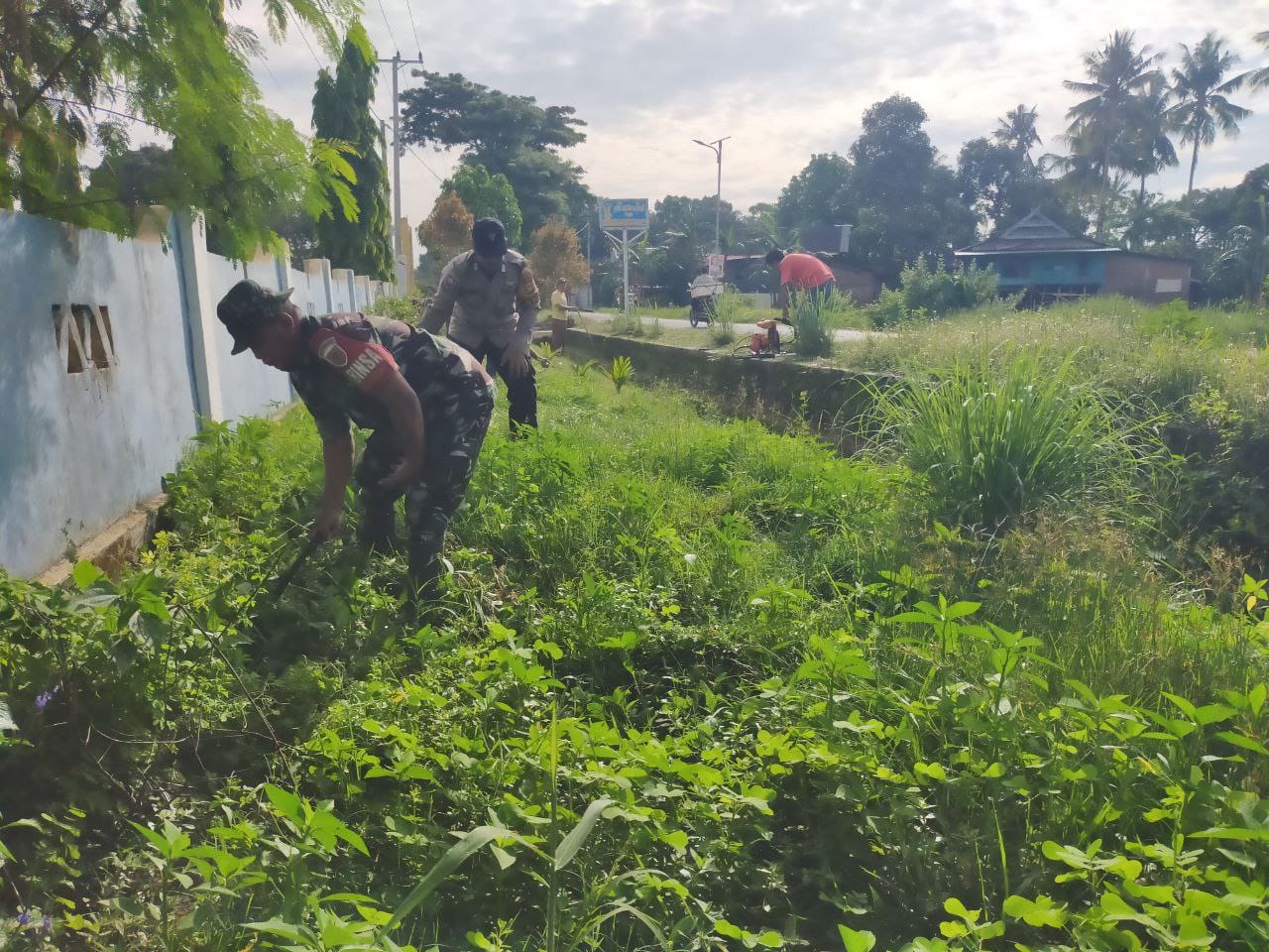 Personel Koramil mengajak warga untuk aktif dan menjadi motivator penggerak masyarakat untuk gotong royong peduli terhadap kebersihan lingkungan. Kegiatan kerja bakti tersebut fokus pada pembersihan bahu jalan yang telah tumbuh rumput liar dan banyak sampah yang mengotori pinggir jalan.
