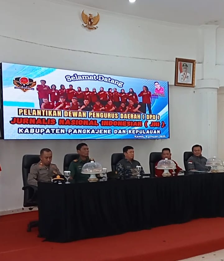 klivetvindonesia.com, Pangkep – Pelantikan dan pengukuhan Dewan Pengurus Daerah (DPD) Pengurus Jurnalis Nasional Indonesia (JNI) Kabupaten Pangkep berlangsung khidmat di Aula Bundar Rumah Jabatan Bupati Pangkep, Kamis (9/1/2025). Acara ini menjadi momentum penting bagi para jurnalis di Kabupaten Pangkep untuk memperkuat peran mereka dalam mendukung transparansi dan pembangunan daerah.