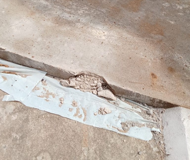 Dari tinjauan di lapangan, kondisi rabat beton terlihat jauh dari memuaskan, dengan adukan material yang terlalu lemah.