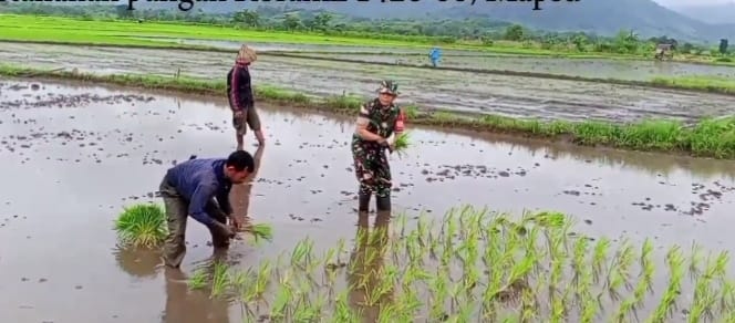 Dukung Ketahanan Pangan, Babinsa Jajaran Kodim 1426 Takalar Bantu Petani Tanam Padi