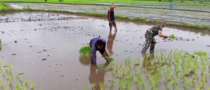 Salah satu upaya Babinsa dalam mendukung Ketahanan Pangan di Wilayah Takalar yakni dengan melakukan pendampingan. Serka Samsuardi Babinsa Koramil 1426-06/Mapsu melaksanakan pendampingan terhadap petani dengan membantu melakukan pembinaan dalam menanam padi.