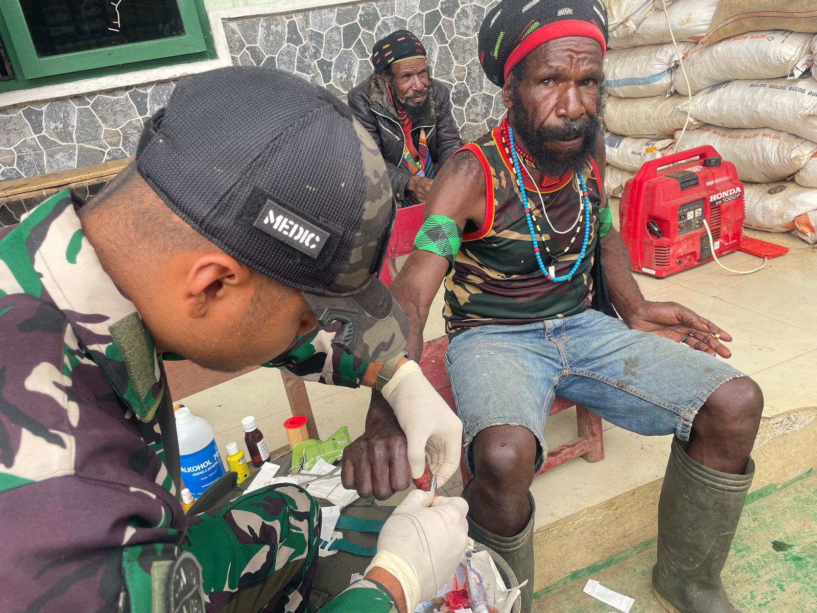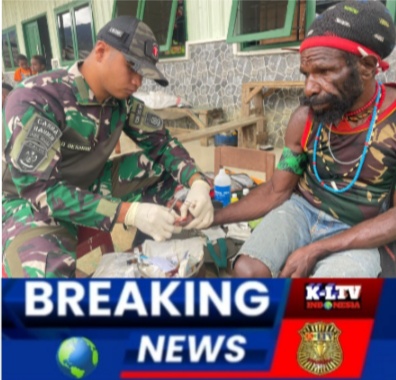 [ ILAGA ] KLTV INDONESIA COM- Satgas Pamtas Mobile Yonif 323/Buaya Putih Kostrad, memberikan pelayanan kesehatan kepada masyarakat yang datang ke Titik Kuat Kodim Persiapan di Kampung Wako, Distrik Ilaga, Kab. Puncak, Papua Tengah. Minggu (12/1/2025).