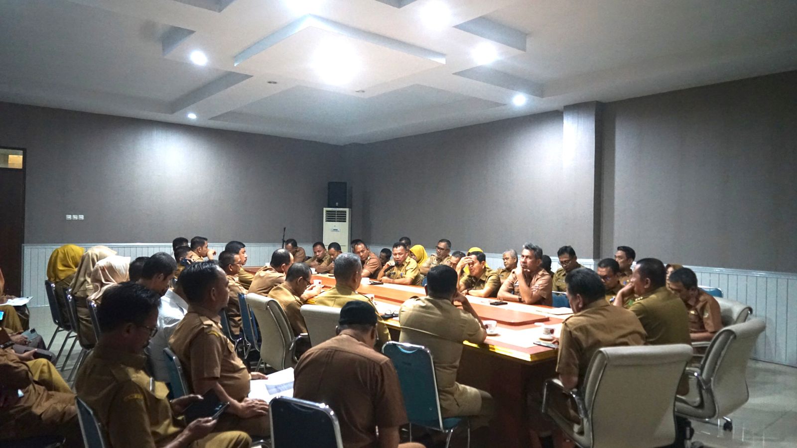 Tampak pada acara di Ruang Rapat Pimpinan Kantor Bupati Sidrap ini, Sekda Sidrap, H. Basra bersama Kepala Organisasi Perangkat Daerah (OPD), staf Ahli, Asisten, Kepala Bagian Setda, Setwan, serta para Camat.