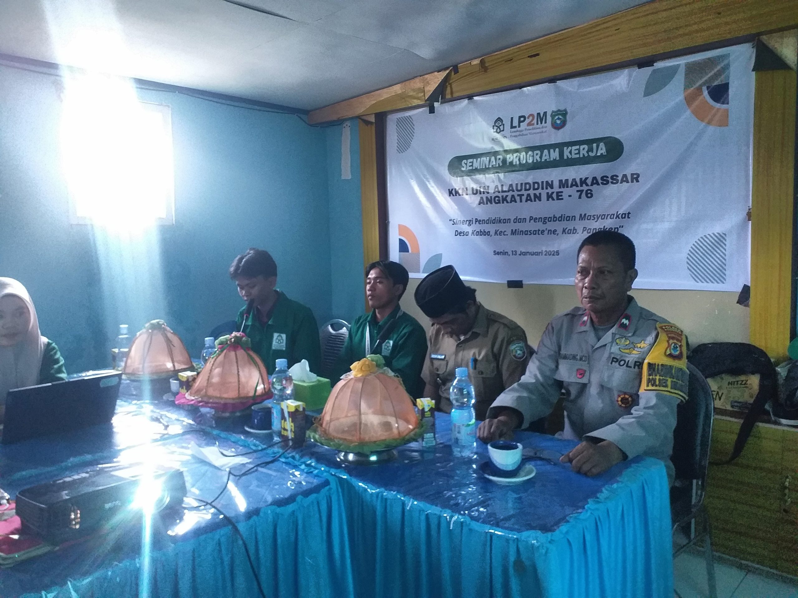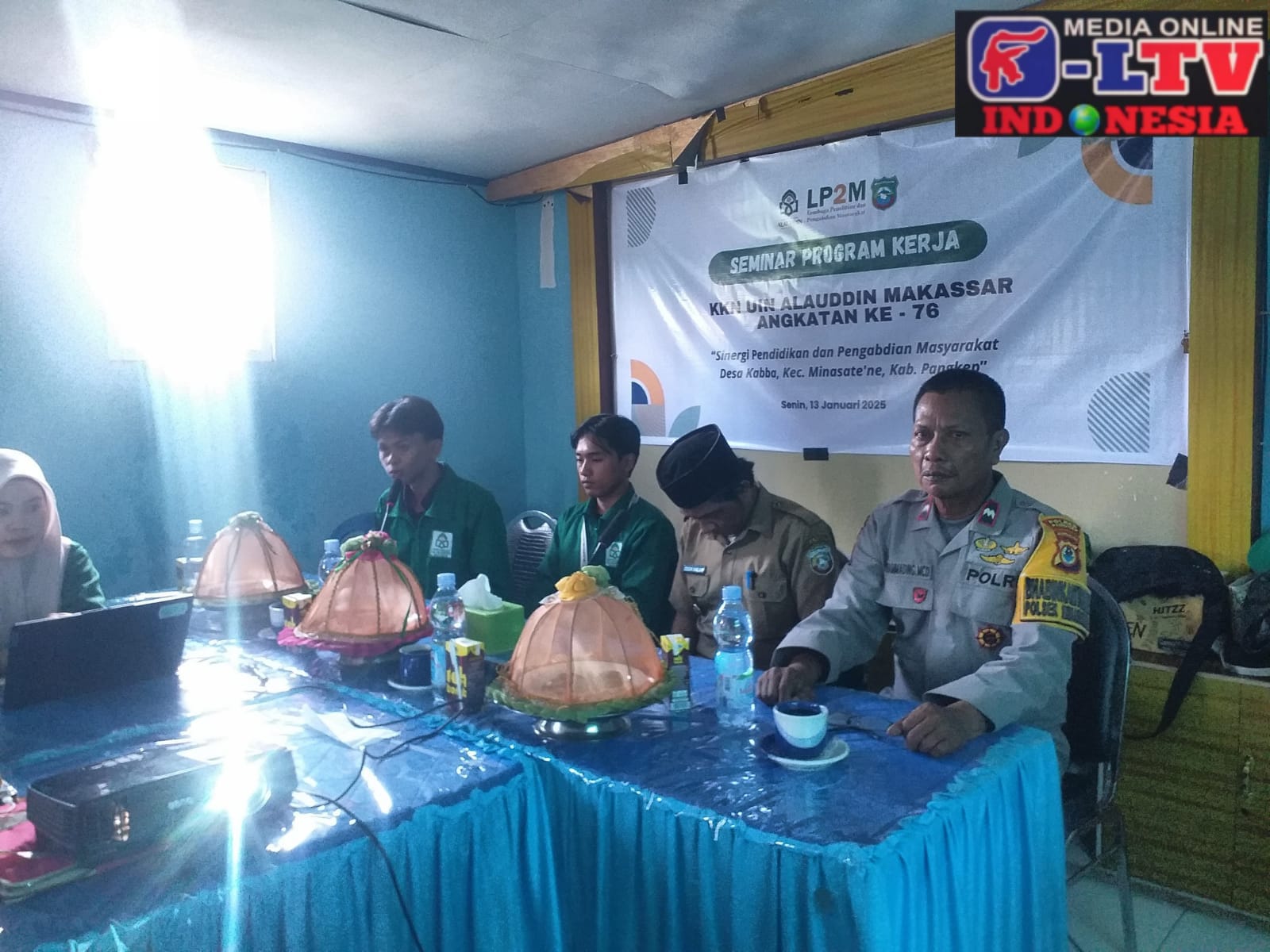 klivetvindonesia.com,  PANGKEP – senin tanggal 13  Januari  2025 pukul 13.30 wita, Bhabinkamtibmas Desa Kabba Polsek Minasate’ne Aipda Muhammading bersama kepala desa kabba/Sekdes dan perangkatnya menghadiri seminar program kerja mahasiswa UIN Makassar  angkatan 76 dan mahasiswa KKN akan berada di desa Kabba