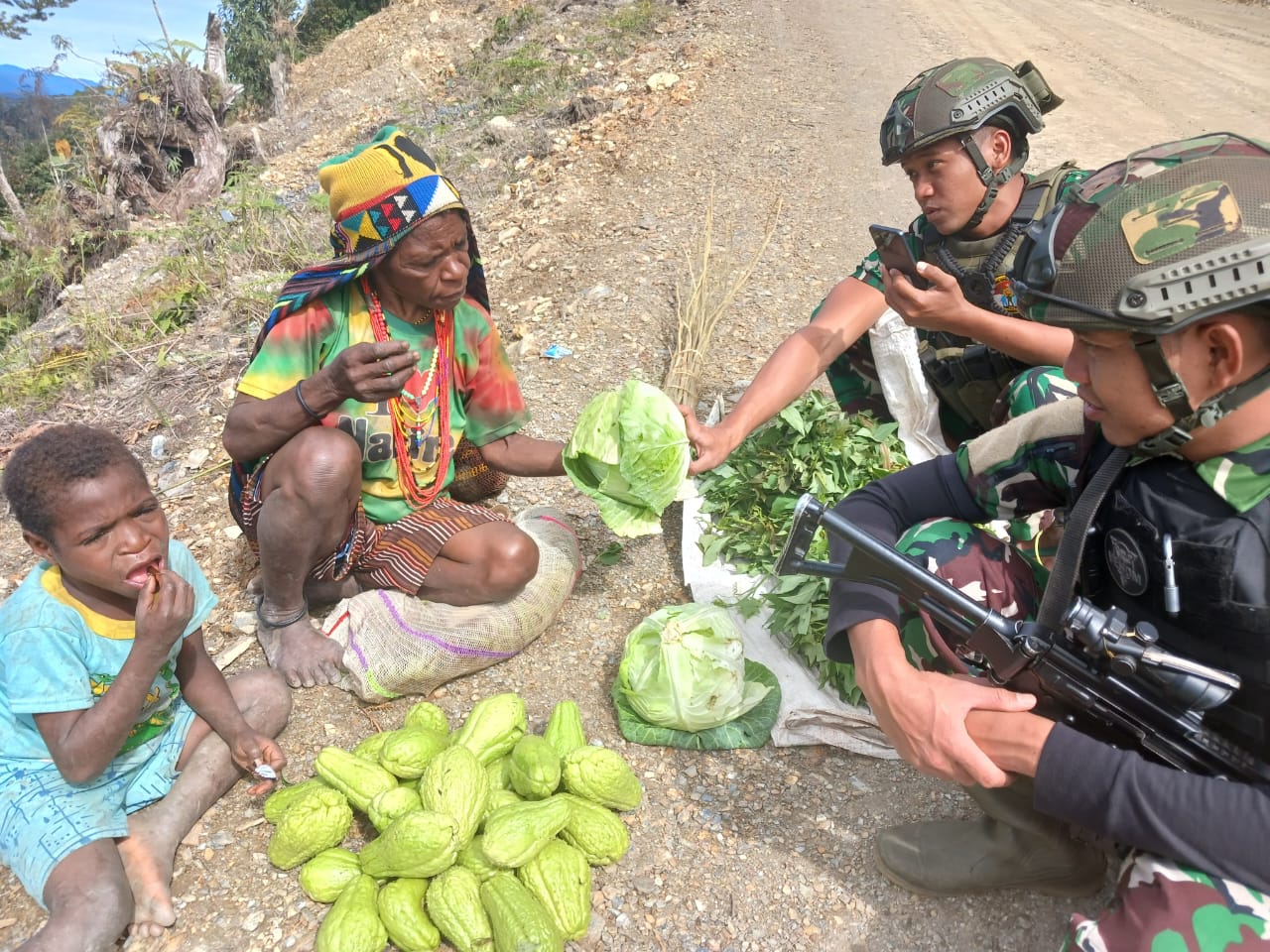 Pada Minggu, (12/1/2025), Satgas Yonif 509 Kostrad, khususnya Pos Holomama pimpinan Lettu Inf Wanianto, melaksanakan program ROSITA atau Borong Hasil Tani milik warga Kampung Mbilusiga, Distrik Sugapa, ketika pelaksanaan patroli pengamanan wilayah.