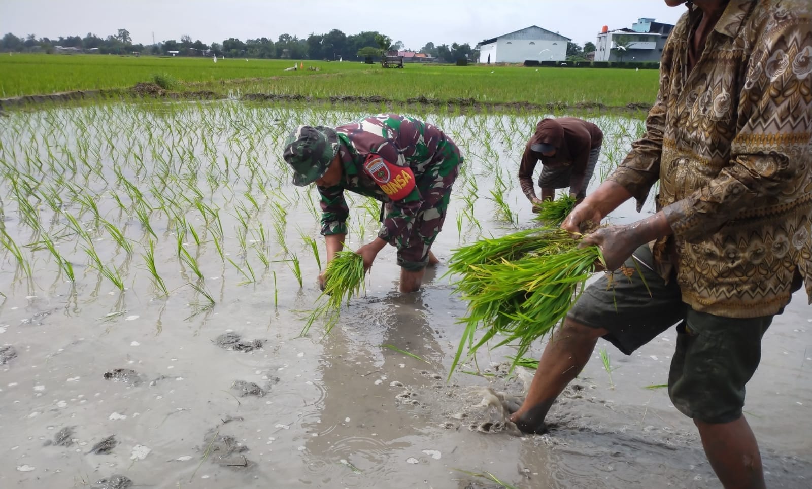 Dengan penuh rasa semangat Babinsa juga menumbuhkan semangat tinggi terhadap para petani dalam menanam padi, bukan hanya saat menanam padi saja tetapi juga di saat penyemaian bibit padi, pengolahan lahan sawah, perawatan sampai panen padi. Seperti saat ini yang sedang kami lakukan ialah menanam padi di sawah, sebagai wujud rasa kepedulian terhadap para petani.