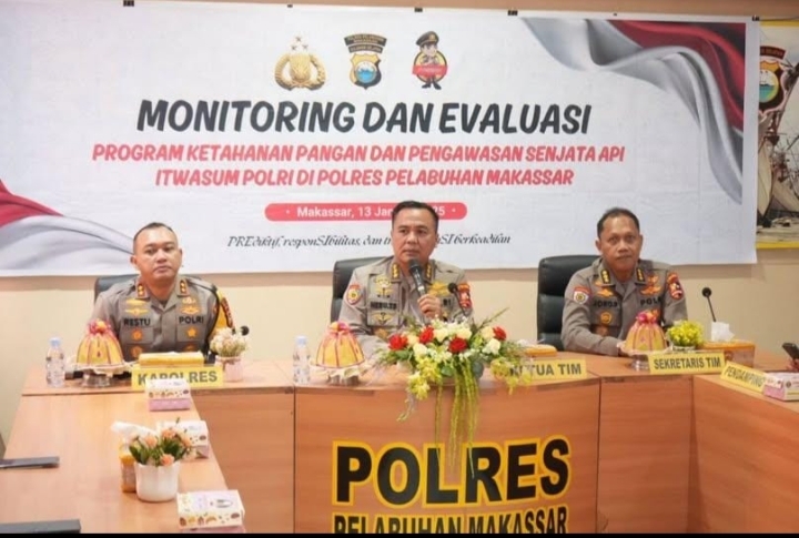 HUMDER -Klivetvindonesia.com- Tim Monitoring dan Evaluasi (Monev) Ketahanan Pangan dan Pengawasan Senjata Api (Senpi) dari Itwasum Polri melakukan kunjungan kerja di Polres Pelabuhan Makassar