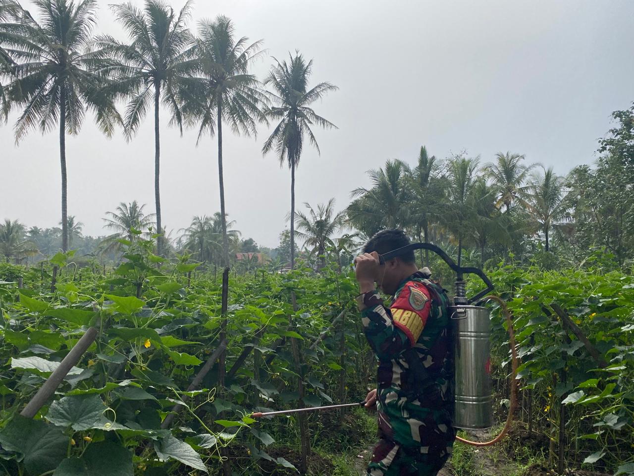 Klivetvindonesia,com. Pesawaran- Babinsa Koramil 421-01/Kedondong Serda Agung Fauzi terlihat mendampingi warga binaan yang sedang merawat tanaman sayuran timun bahkan prajurit TNI -AD tersebut tidak segan memikul alat seprot untuk membasmi hama maupun menjaga dari serangan penyakit. Di lahan milik Bapak Sumpono Desa Way Kepayang Kabupaten Pesawaran. Rabu (15/1/2025)