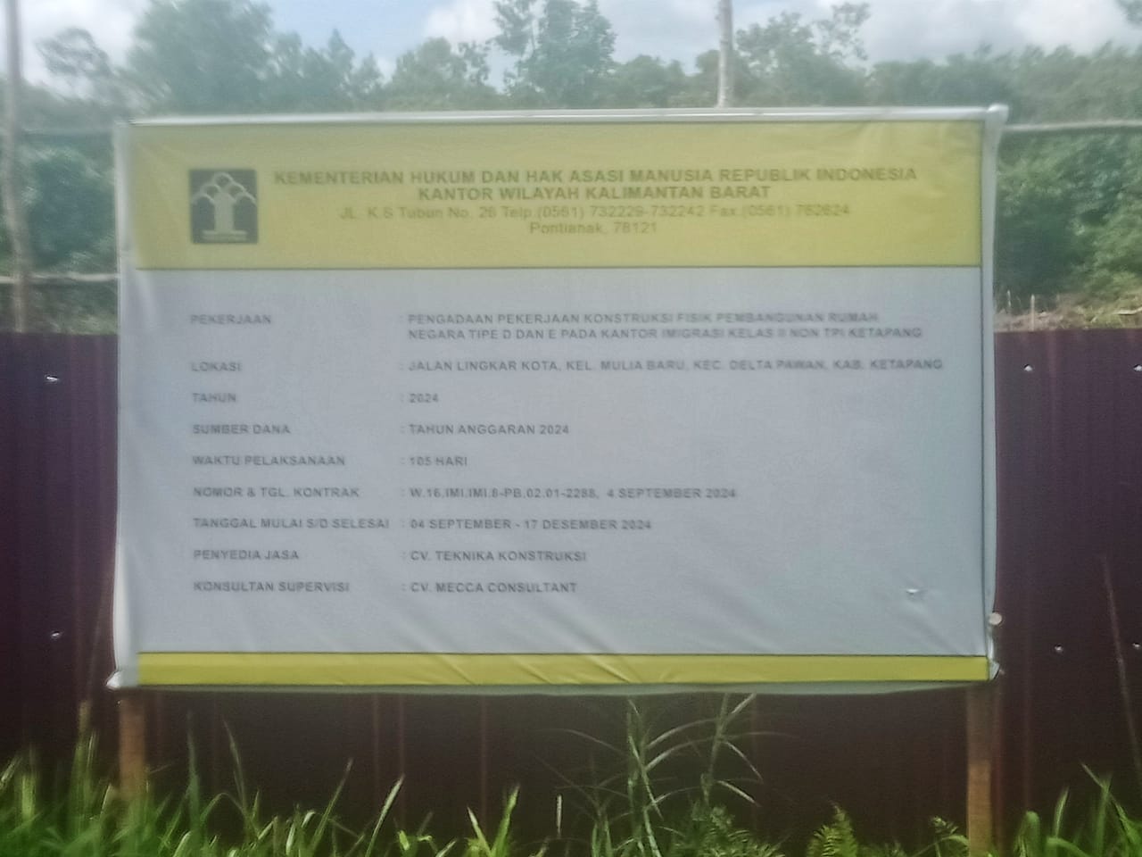 Telah mengadakan Pengadaan Pekerjaan Konstruksi Fisik Pembangunan Rumah Negara Tipe D dan E Kantor Imigrasi untuk Tahun Anggaran 2024.