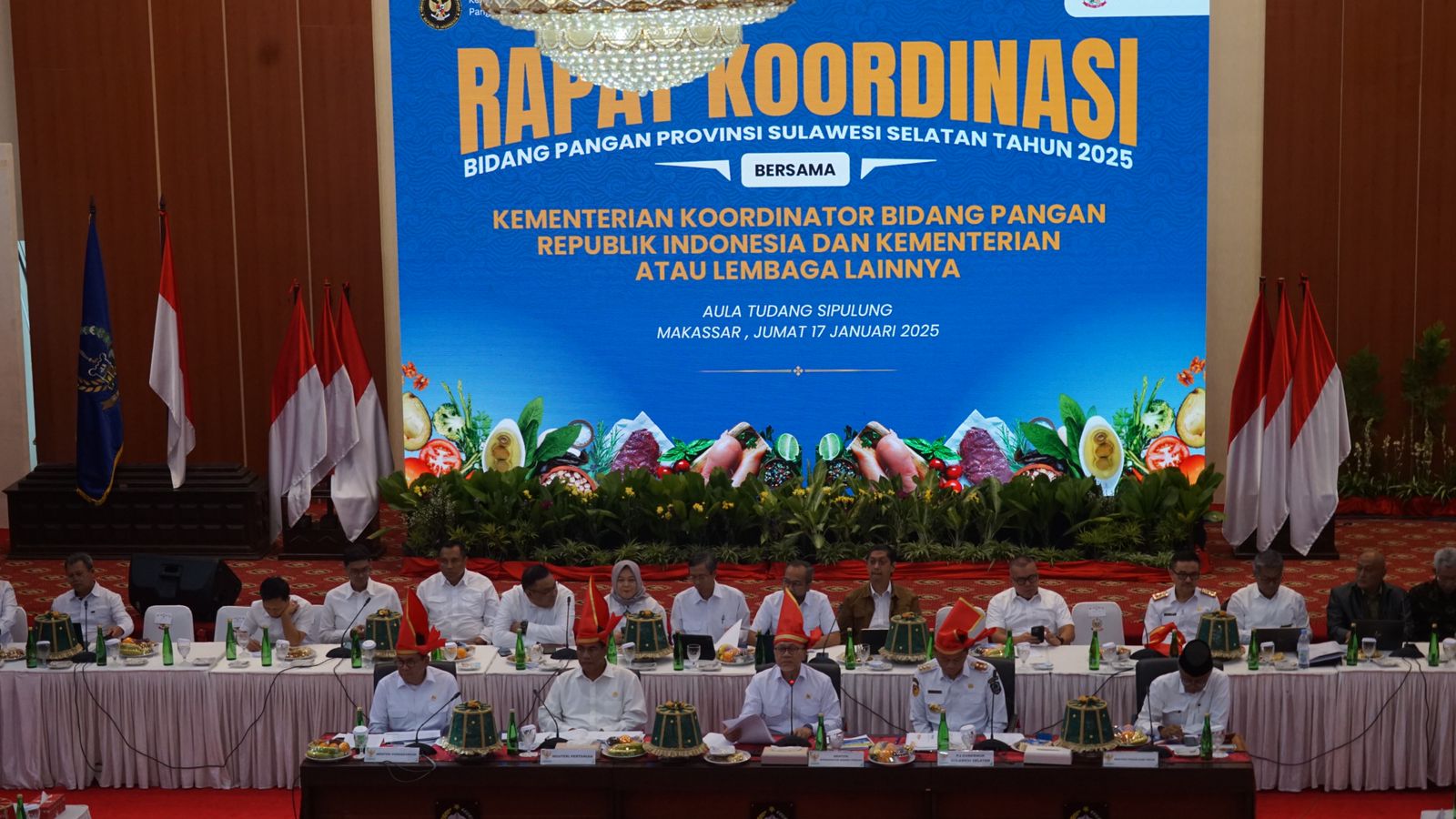 Rakor dipimpin Menteri Koordinator Bidang Pangan Zulkifli Hasan, berlangsung di Ruang Tudang Sipulung, Rumah Jabatan Gubernur Sulsel, Kota Makassar.