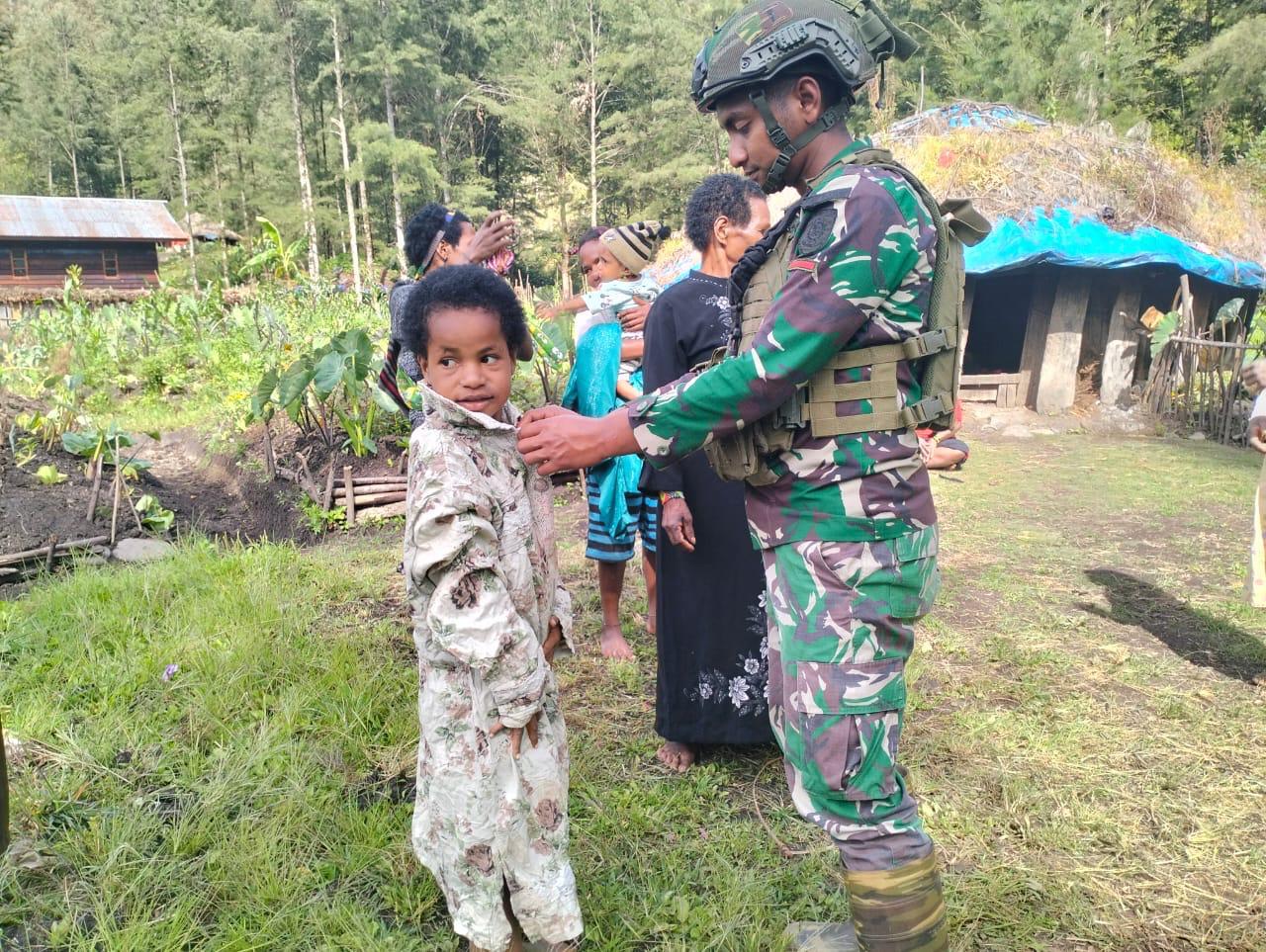 [ ILAGA UTARA ] – KLTV INDONESIA.COM Berbagi kasih wujudkan cinta di wilayah Papua, Titik Kuat Mayuberi Satgas Yonif 323/Buaya Putih Kostrad membagikan pakaian layak pakai kepada warga di Kampung Mayuberi, Distrik Ilaga Utara, Kabupaten Puncak, Papua Tengah, Jumat (17/01/2024).