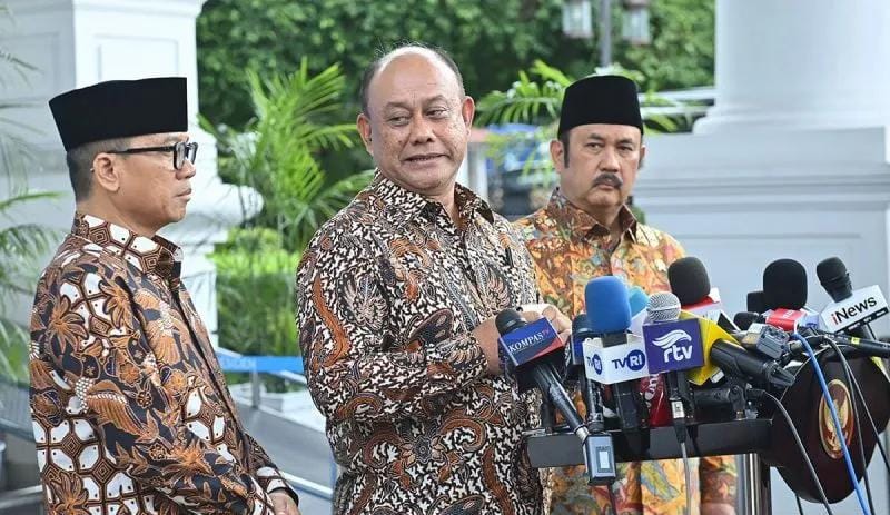 klivetvindonesia.com, Kepala Badan Gizi Nasional (BGN) Prof. Dadan Hindayana (dua kiri) jumpa pers di Kompleks Istana Kepresidenan, Jakarta, Jumat (17/1/2025) bersama beberapa menteri Kabinet Merah Putih selepas rapat bersama Presiden Prabowo Subianto membahas percepatan pelaksanaan program makan bergizi gratis.