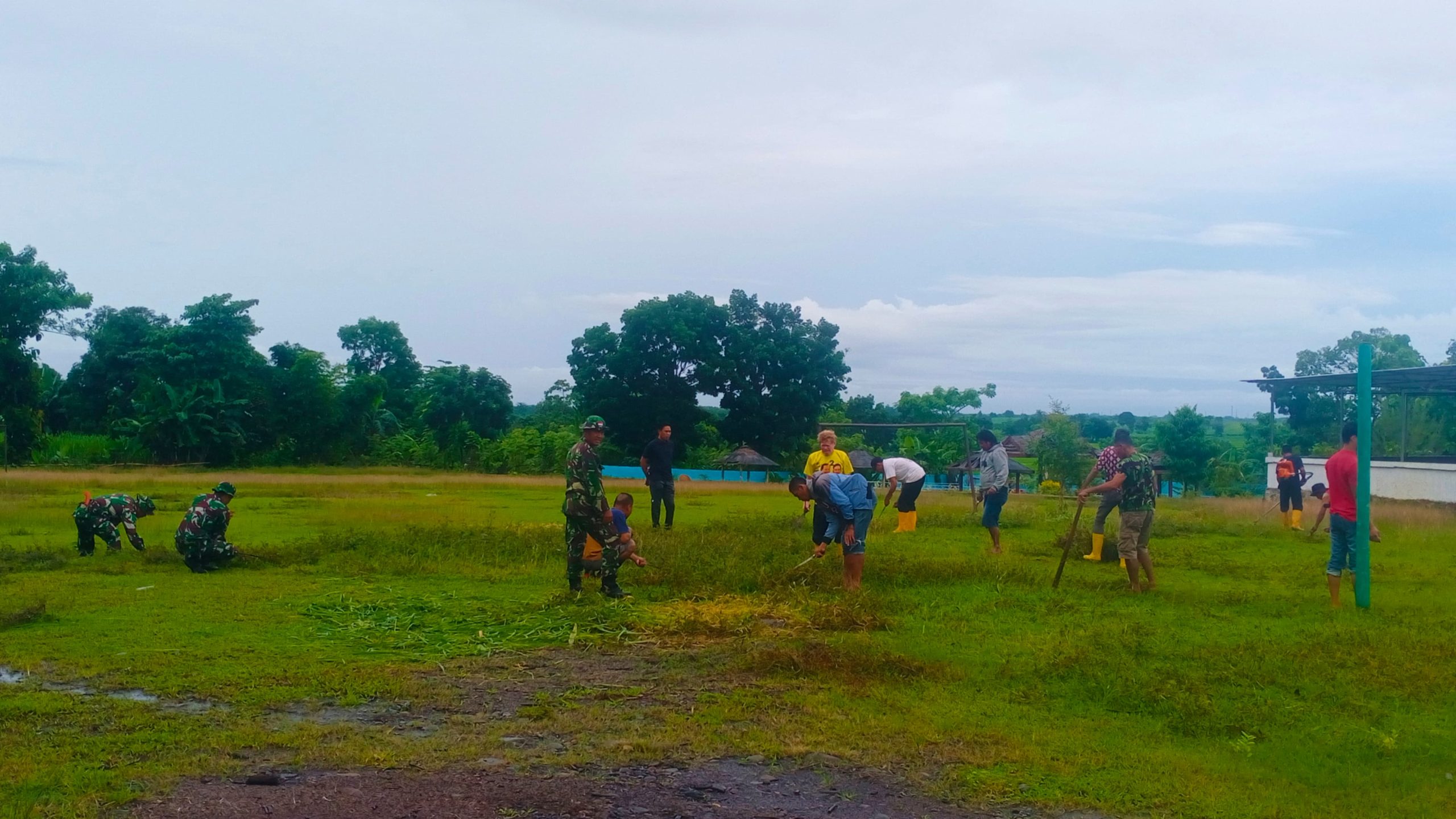 Personel Koramil 1426-01/Polut Bersama Warga Gotong Royong Bersihkan Lapangan