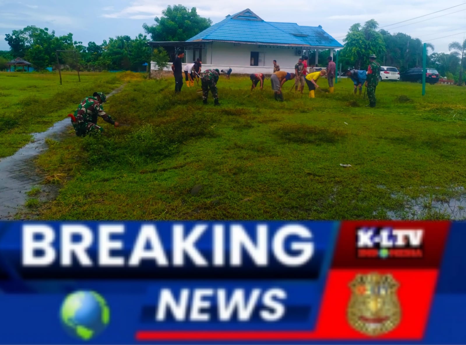 Personel Koramil bersama masyarakat nampak kompak bersinergi untuk membersihkan sampah di sekitar lapangan. Kegiatan ini bertujuan agar lapangan menjadi bersih rapi dan indah.
