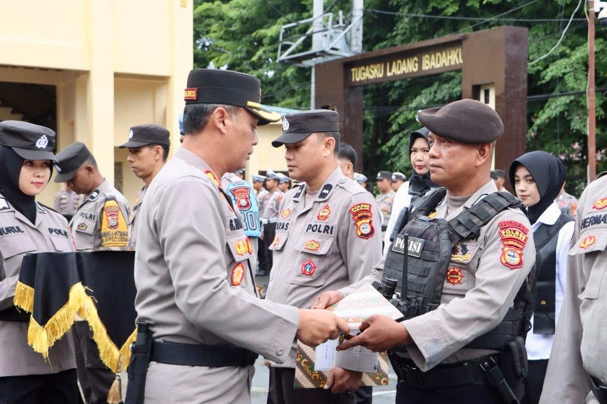 Dalam amanatnya, AKBP Gotam Hidayat menyampaikan apresiasinya kepada seluruh personel yang menerima penghargaan dan menekankan pentingnya semangat dedikasi dalam tugas kepolisian.