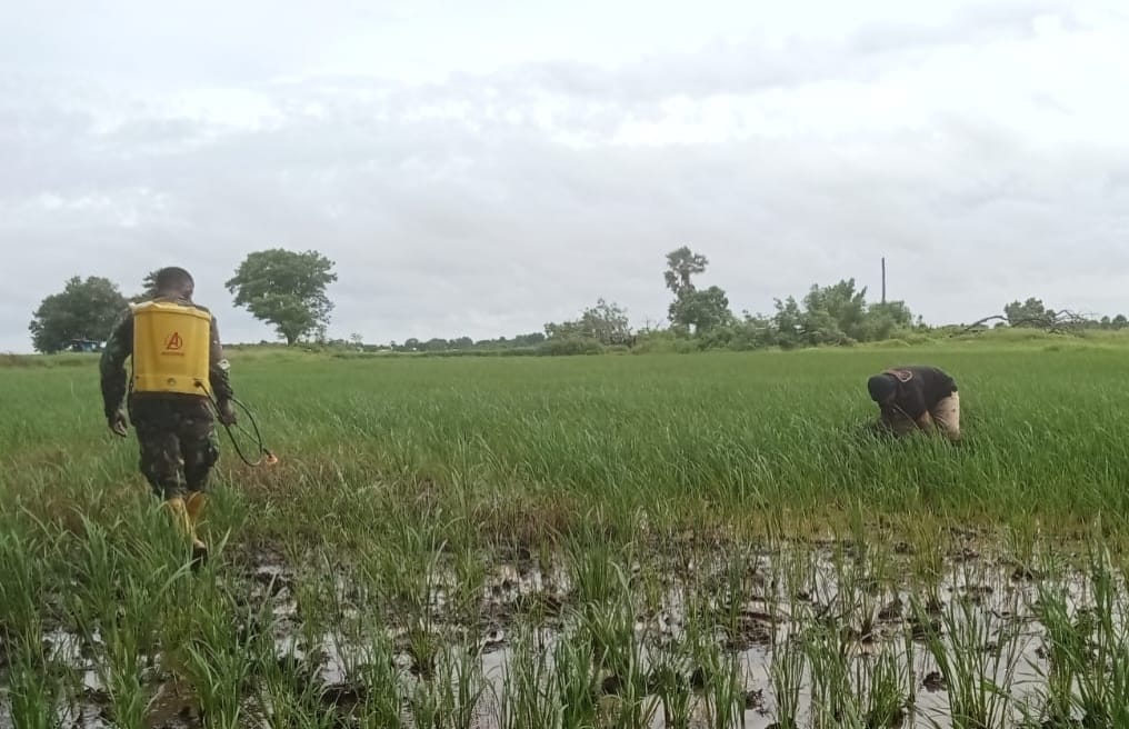 Babinsa menyampaikan, agar proses penyemprotan hama ini berjalan dengan cepat, maka Babinsa terjun langsung membantu petani melakukan penyemprotan. Dengan teknik penyemprotan yang benar, pertumbuhan tanaman padi akan terhindar dari gangguan hama semua itu dilakukan guna menyukseskan serta mewujudkan swasembada pangan, ”tutur Babinsa.