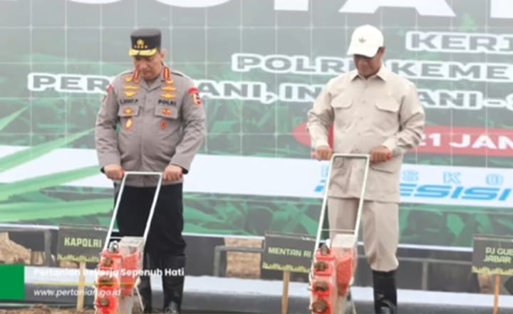 Subang, – Menteri Pertanian (Mentan) Andi Amran Sulaiman bersama Kapolri Jenderal Polisi Listyo Sigit Prabowo memimpin kegiatan tanam jagung serentak seluas 1 juta hektar yang melibatkan 19 provinsi di Indonesia. pada Selasa 21/01/2025
