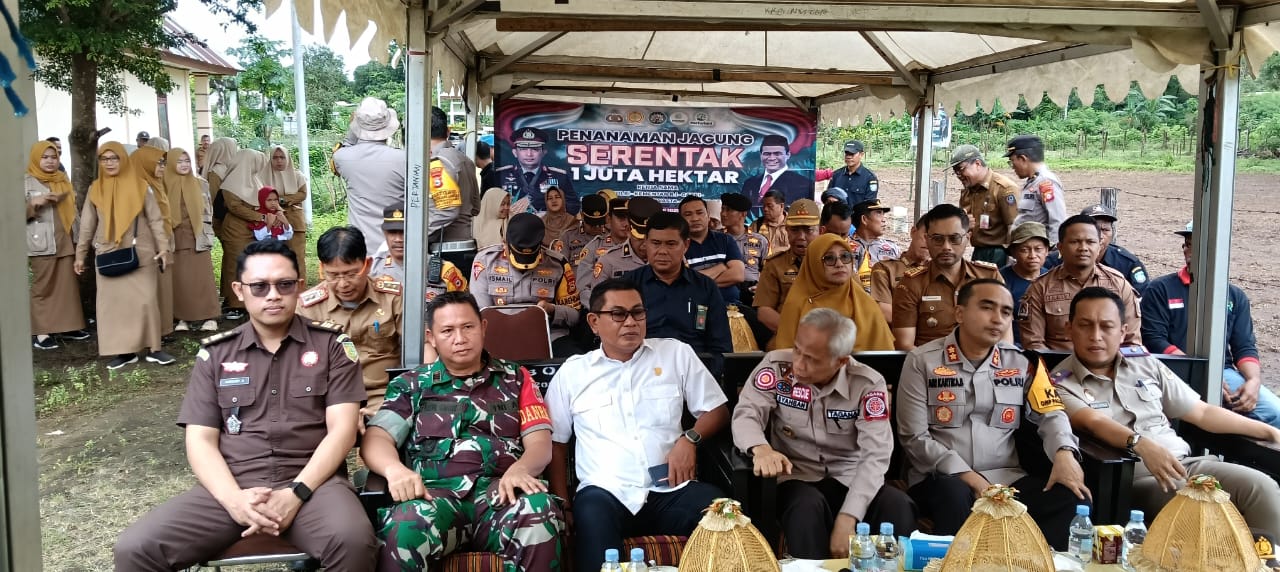 Dijelaskan sahabat, hal ini bukan gawenya pertanian tapi ini bentuk kolaborasi kita, ada Kapolres, Dandim, Ketua DPRD dan lainnya harus bahu-membahu menanam, target satu juta hektar itu bukan hal yang mustahil, untuk kebersamaan kita bagaimana mensukseskan program satu juta hektar ketahanan pangan kita bisa swasembada. Kita akan laksanakan di 13 Kecamatan di mana para Kapolsek kita sudah siap.